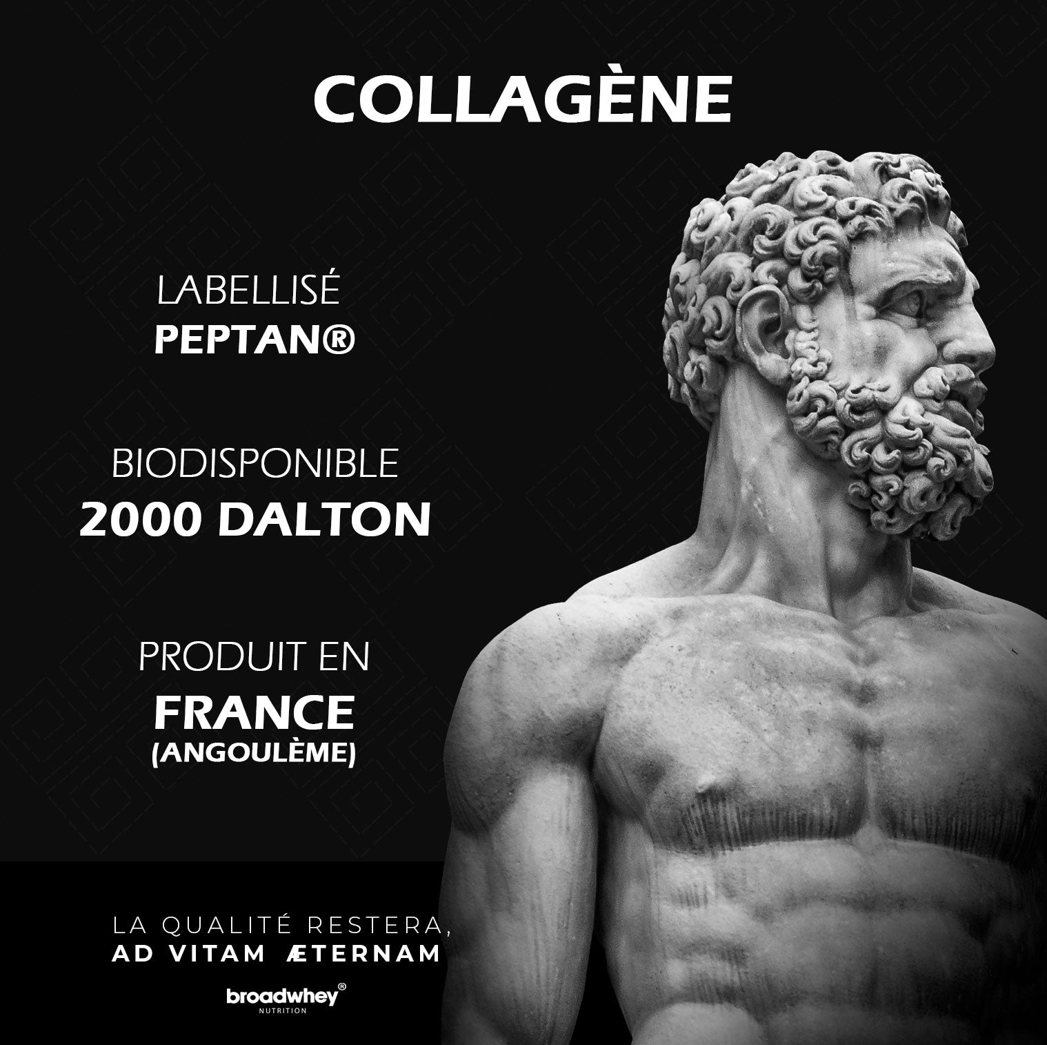 Chez Broadwhey, nous aimons aller à l'essentiel. Notre collagène, c'est donc tout simplement du Peptan®, une référence mondiale pour sa qualité.