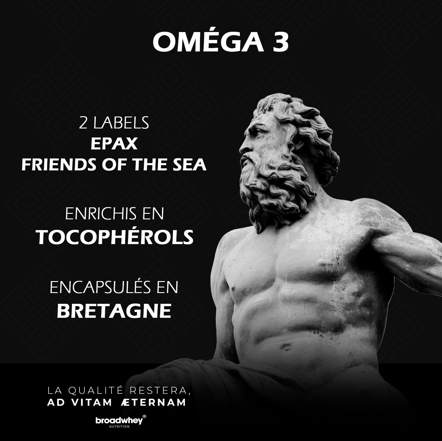 Chez Broadwhey, pour te proposer le meilleur, nous avons fait un choix sans compromis : nous avons formulé nos oméga-3 avec l'huile de poisson la plus pure et la plus concentrée au monde, la référence EPAX®.