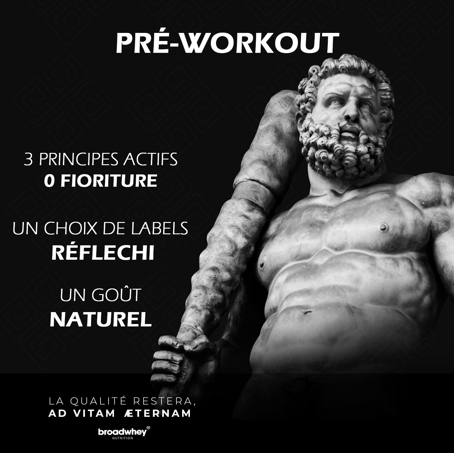 Notre Pre-Workout est un booster d'entraînement (complément alimentaire pour le sport) formulé avec des ingrédients efficaces et traçables, dosés pour la performance. Rien d'autre : ni sucre, ni colorant, ni arômes artificiels.